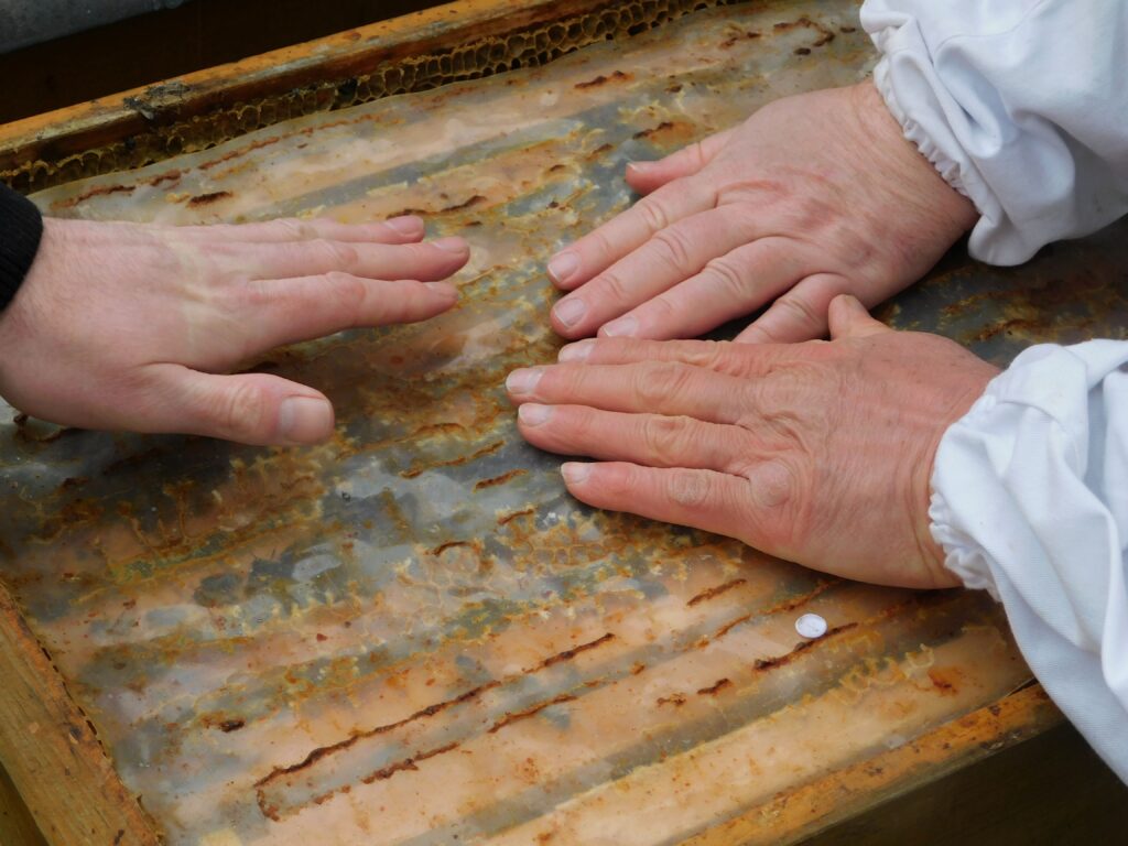 Ohne ins Volk zu schauen, kann man die Wärme der Bienen und deren Bruttätigkeit durch Handauflegen fühlen.