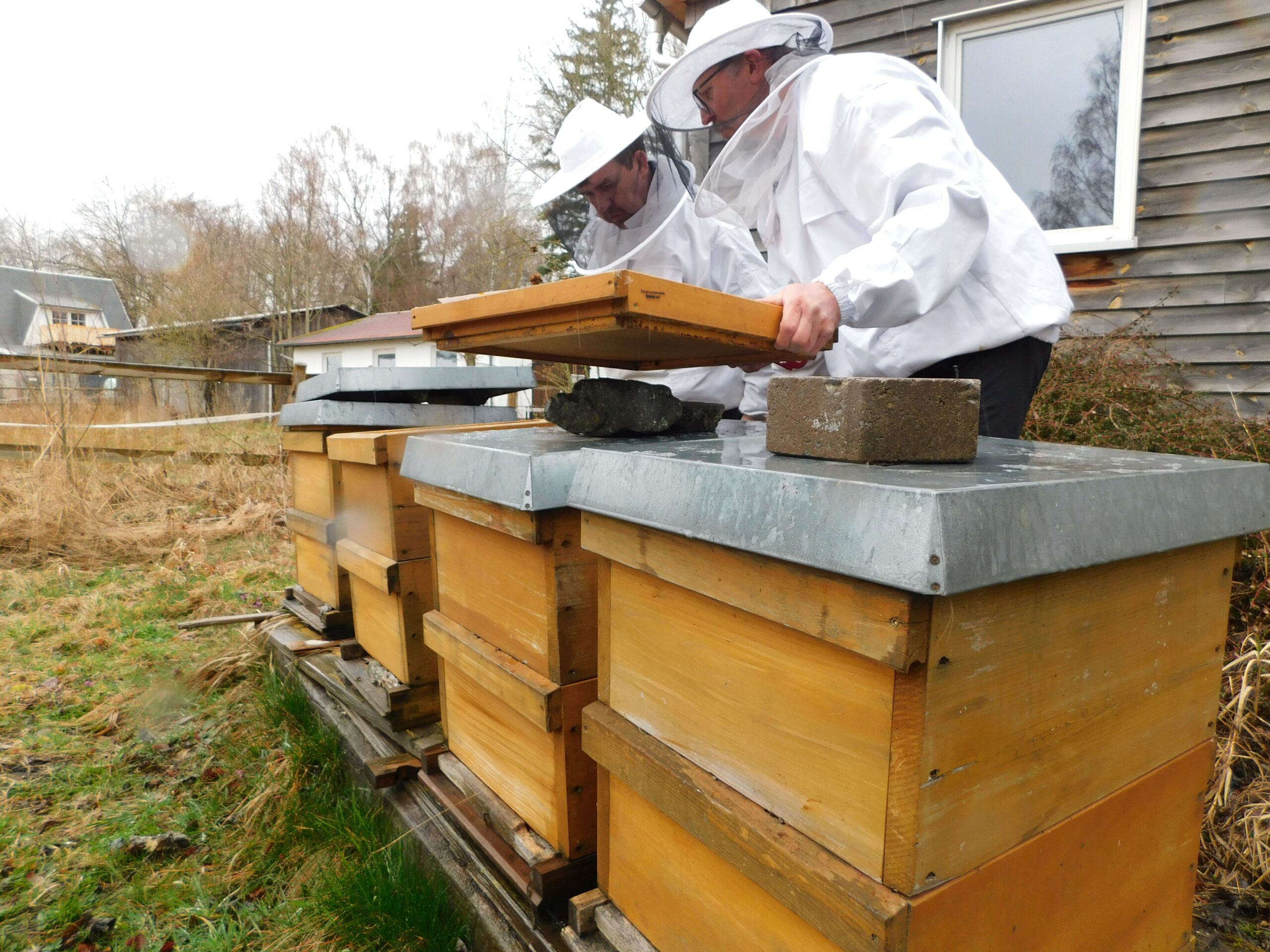 Am 14.03.2026 startete unsere erste Durchsicht auf dem Lehrbienenstand am Schülerfreizeitzentrum in Ilmenau. Trotz regnerischen Wetter wurde durch kurzes anheben überprüft, ob die Bienen noch genug Futter haben.